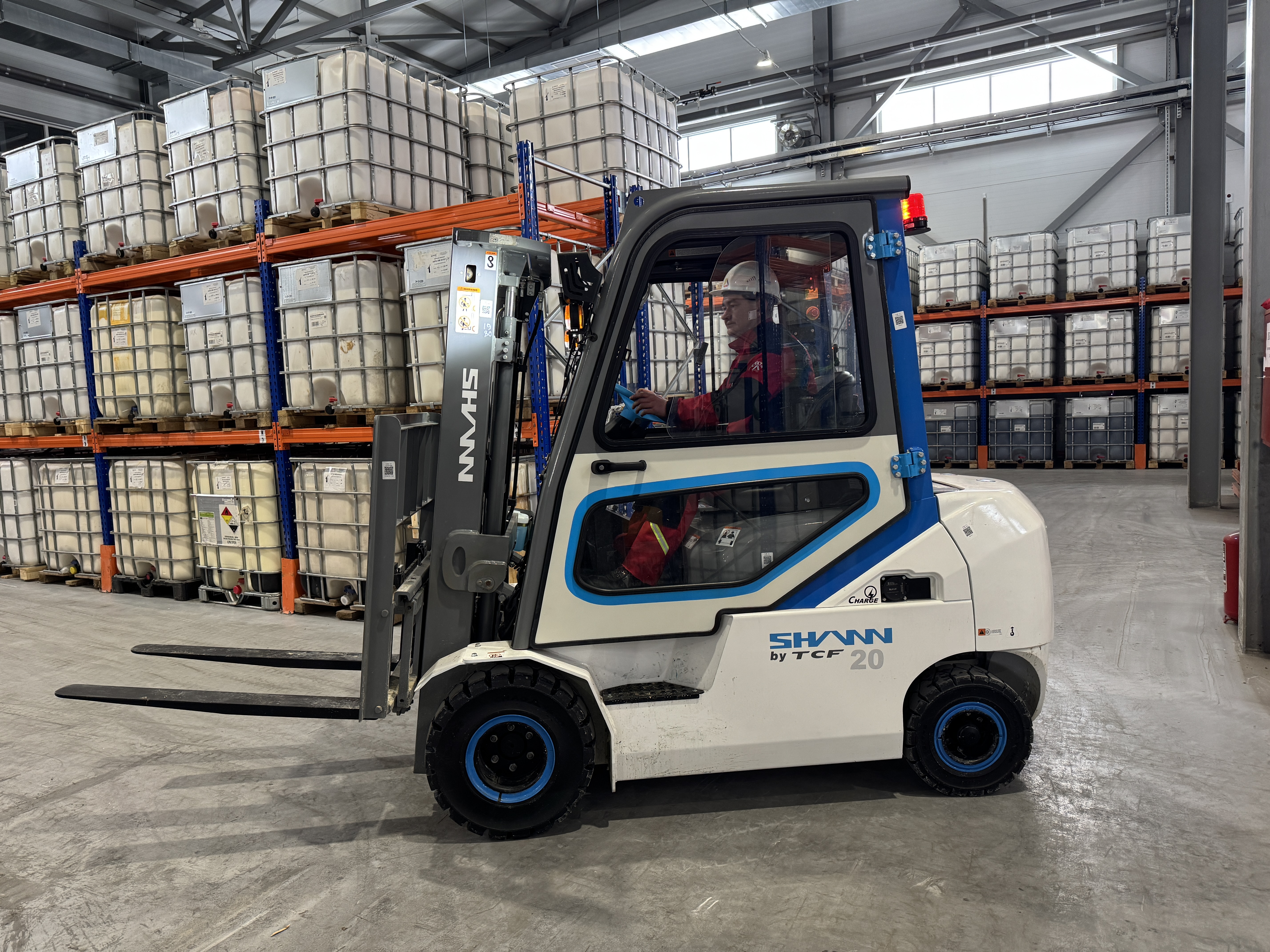 В цеху №20 по производству оптических отбеливателей испытывался электромобильный погрузчик SHANN II FB50, где подтвердил свою способность работать с полной нагрузкой даже при температуре ниже -27°C. Ключевые выводы операторов цеха: — Стабильность и грузоподъемность: благодаря широкой базе и удачной компоновке с правильной развесовкой, погрузчик демонстрирует отличную устойчивость при подъеме тяжелых грузов. Функция смещения каретки добавляет точности при позиционировании паллет. — Работа в зимних условиях: техника зарекомендовала себя хорошо при сильных морозах. После интенсивной смены с высокой нагрузкой остаточный заряд аккумуляторной батареи составлял более 30%, что свидетельствует о высокой энергоемкости и морозоустойчивости батарей. — Безопасность и комфорт: хорошая обзорность с места оператора и эффективная работа отопителя салона обеспечивают безопасность и комфорт в холодное время года. — Низкий уровень шума: по сравнению с дизельными аналогами, работа электропогрузчика SHANN II FB50 оказалась значительно тише, что улучшает условия труда в цехе.
